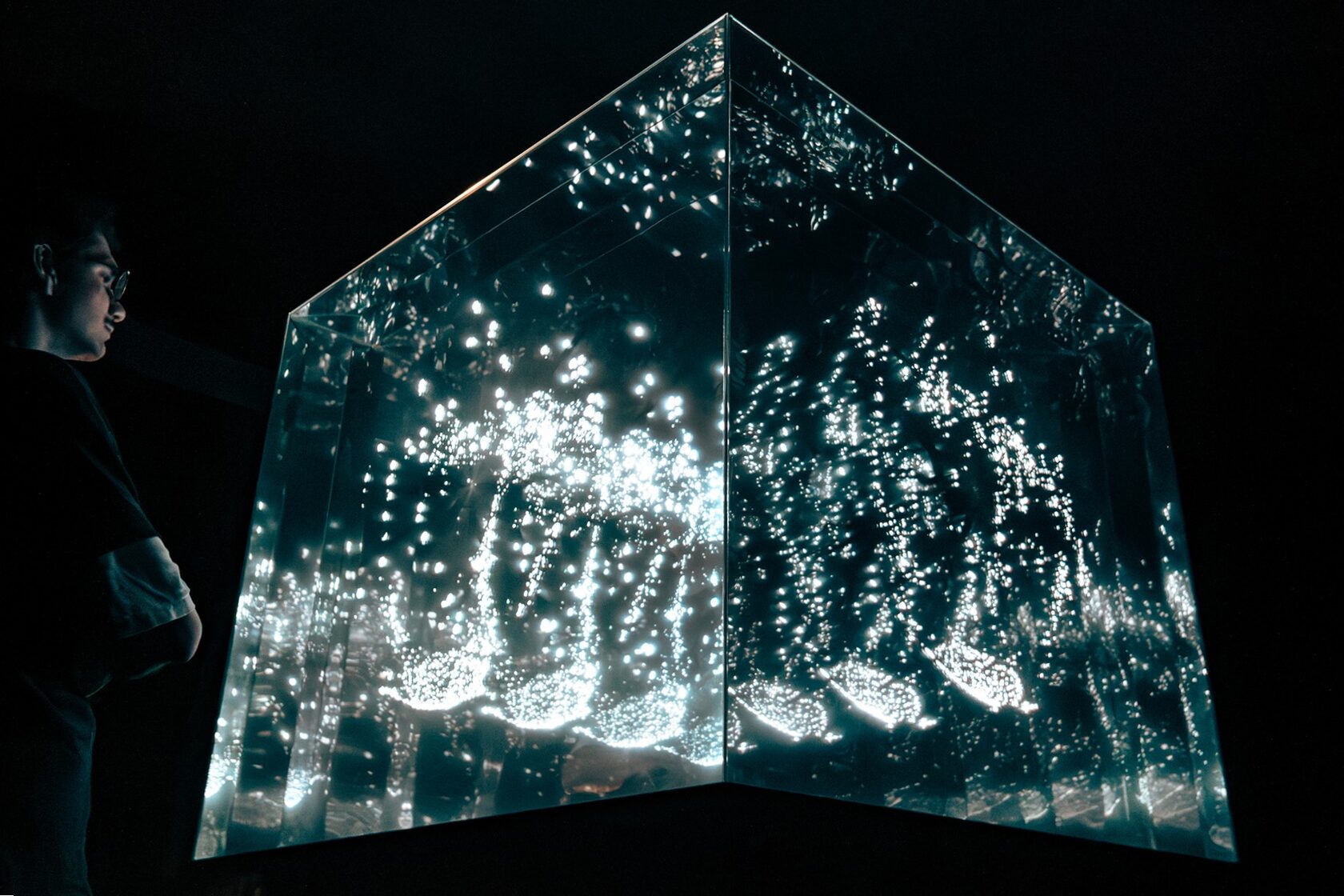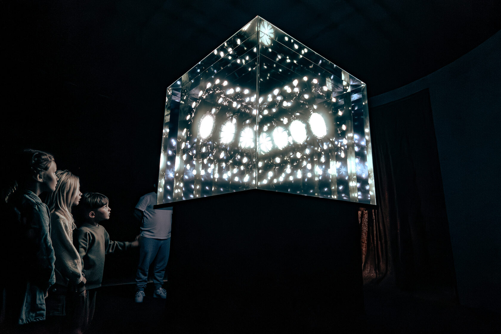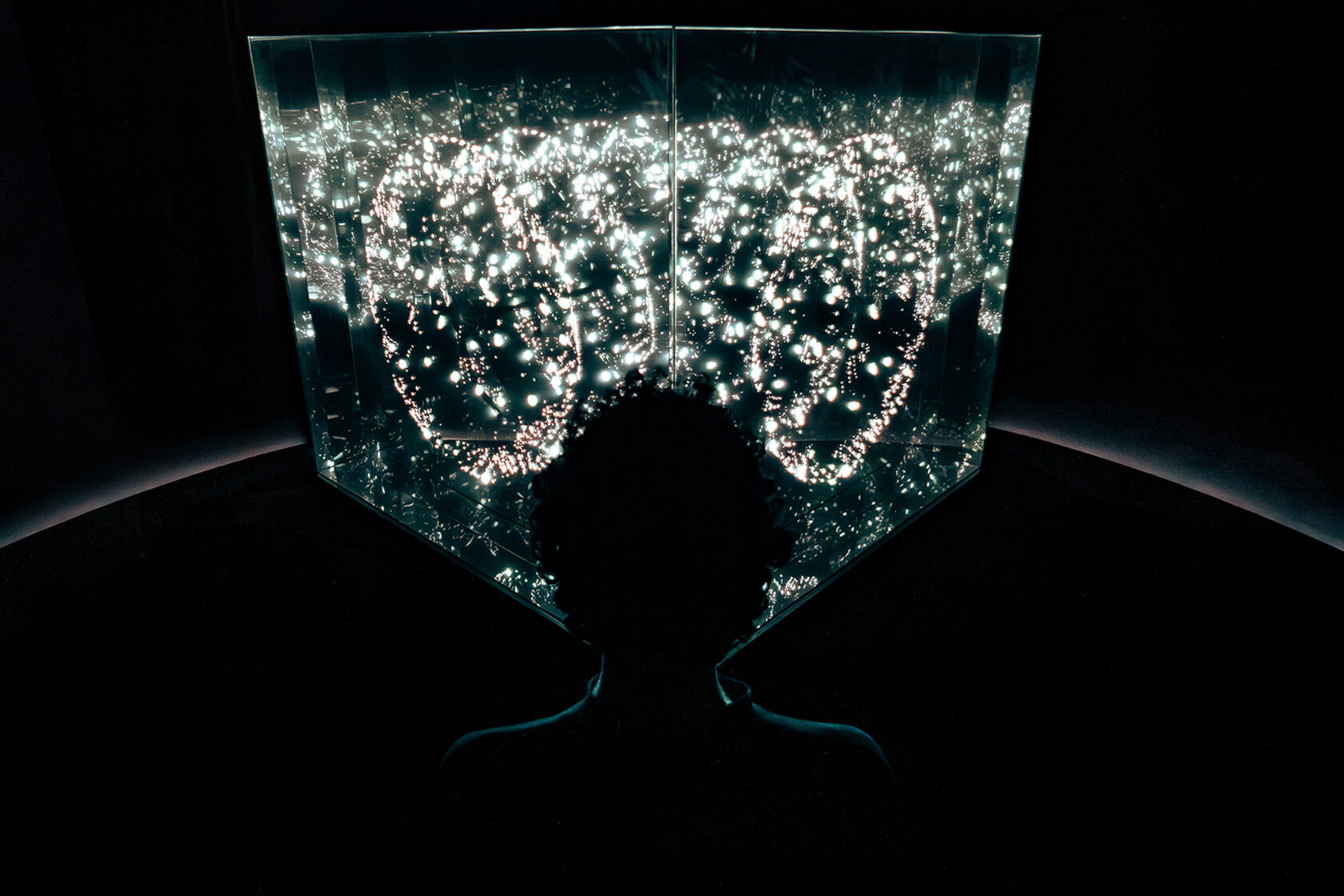 The platform beneath the feet transmits low-frequency vibrations, below the threshold of human hearing, merging auditory, visual, and tactile stimuli into a synesthetic perception.